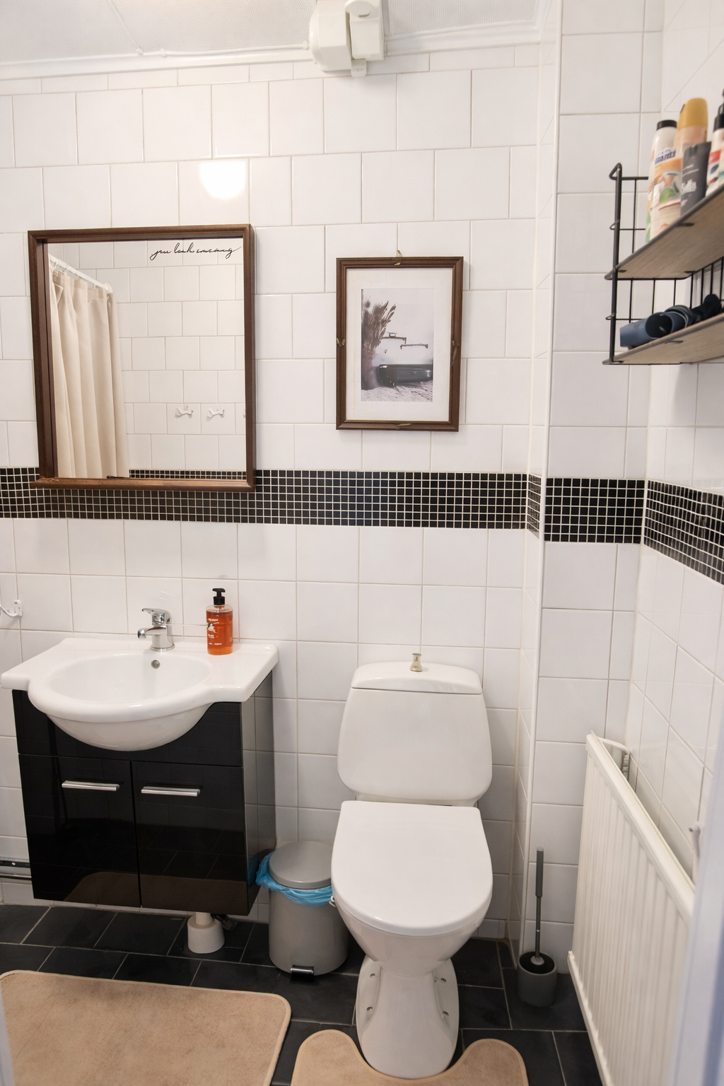 Ein bequemes Badezimmer wartet auf dich. Wir haben einen neuen Heizkörper installiert damit du dir deine Wärme so regulieren kannst wie du es möchtest. Auch genügend Platz für all deine Pflegeutensilien ist geschaffen. Und ja, ein Fön ist auch am Start ♡