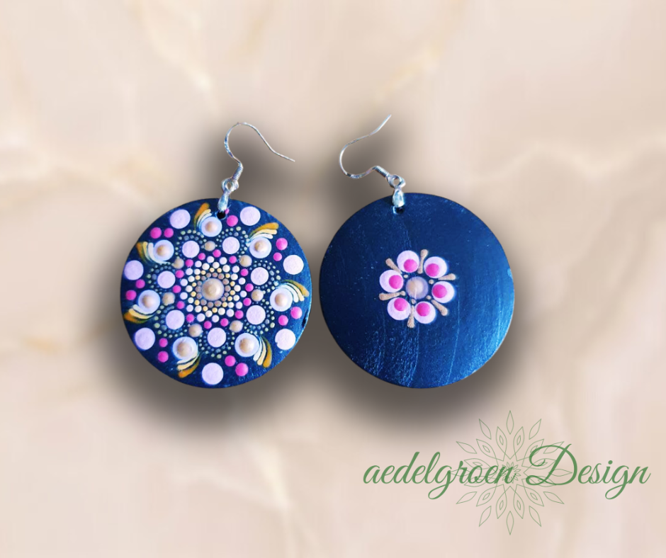 Wooden earrings made with love. Point by point I created this pretty, summery pair of earrings for you or someone you love. A unique piece that I have painted on both sides. They are light and comfortable to wear.