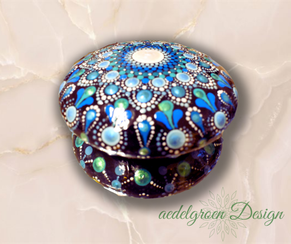 This piece was also handmade with love im dotpainting 3D style. It was cast from a plaster-concrete mixture and then painted with care and sealed with varnish. A pretty stone for example for the decoration on the windowsill, the set table or as a gift for dear friends, relatives or yourself.