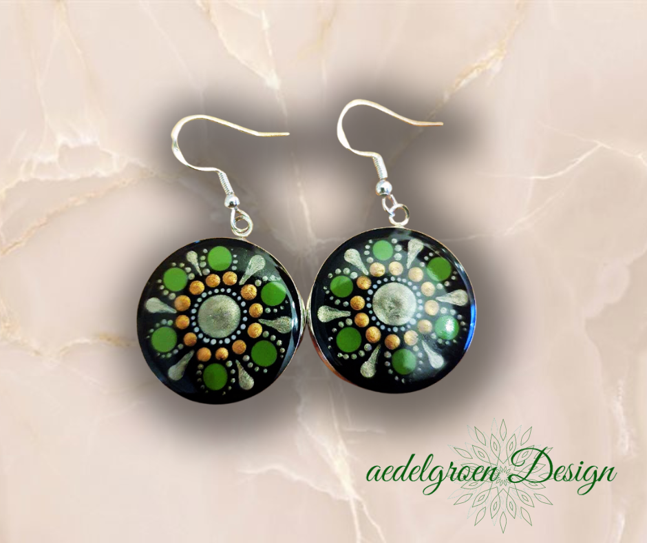 A nice pair of earrings made of stainless steel, which was made with a lot of love. The floor was primed and polished with black lacquer paint, then painted with a lot of love and then filled with epoxy resin after drying. The pendants are made of 925 sterling silver pieces that there is no second time, for you or as a gift for a loved one.